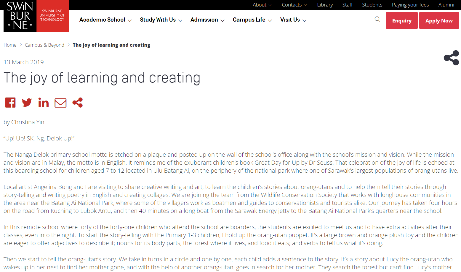 Mural Painting at Swinburne’s Green Wall Featured on Borneo Post