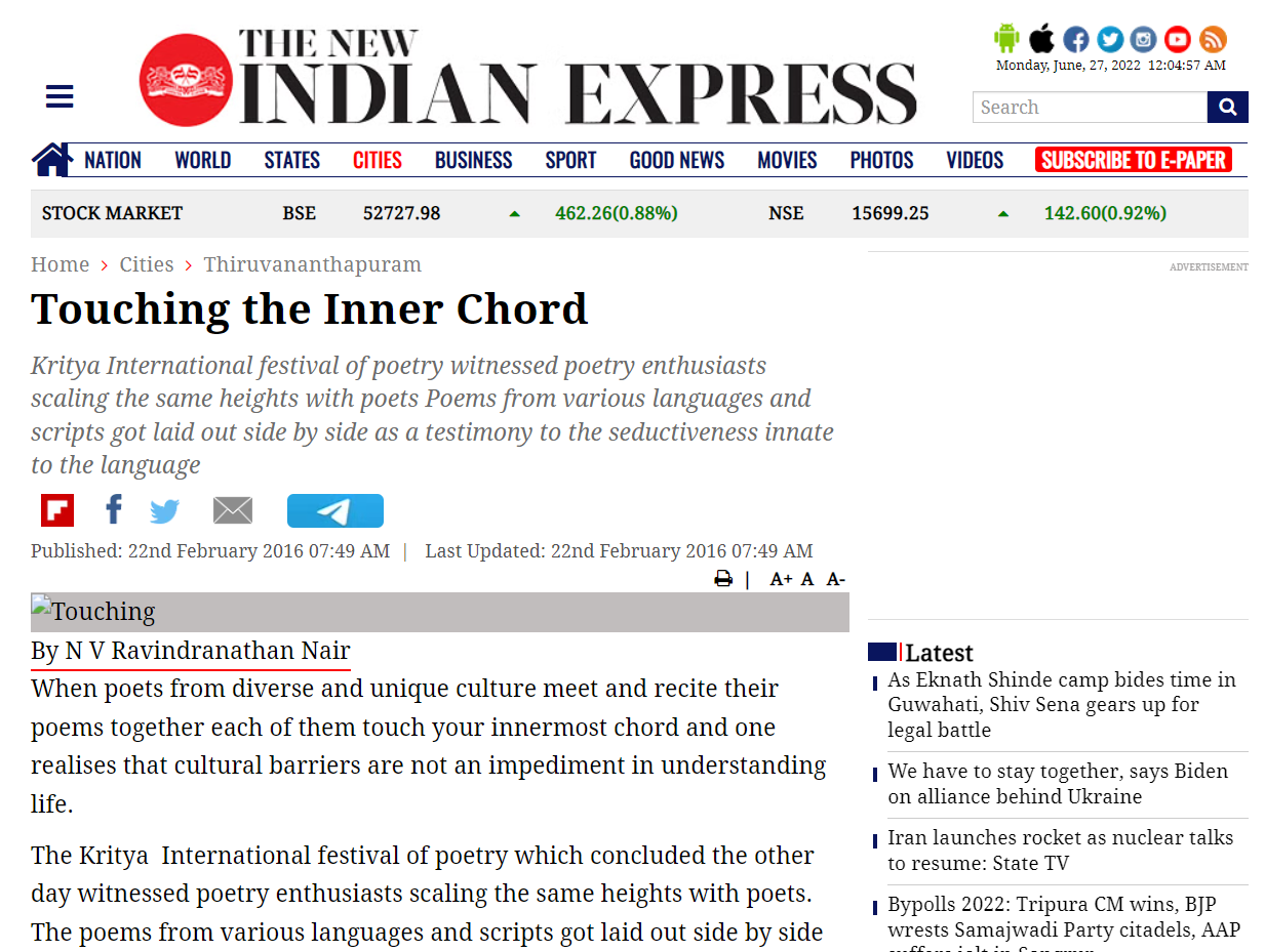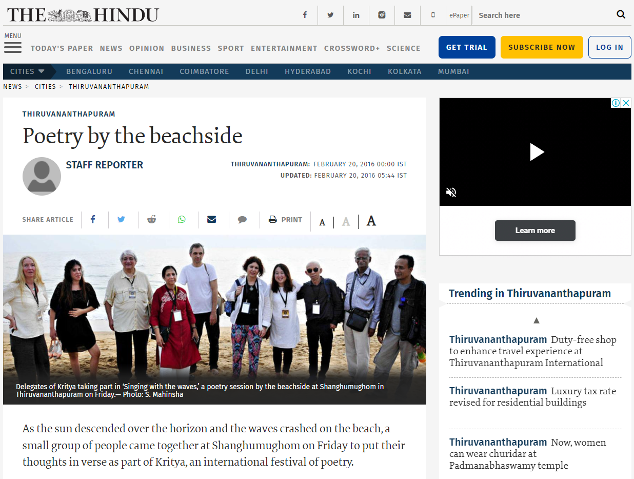 “Poets soothe patients through their healing verses” at Kritya Poetry Festival 2016.